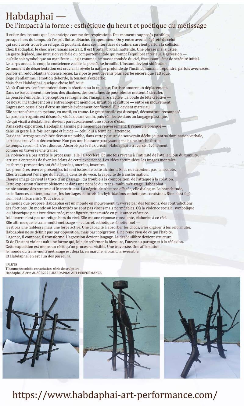To critique Habdaphaï is to recognize in him a builder of bridges, a craftsman of shared universals, a poet of inhabited forms. As dominant narratives seek to flatten identity into slogans or soundbites, his art teaches us the intelligence of ambiguity, the patience of symbolic weaving, and the profound beauty of the in-between.